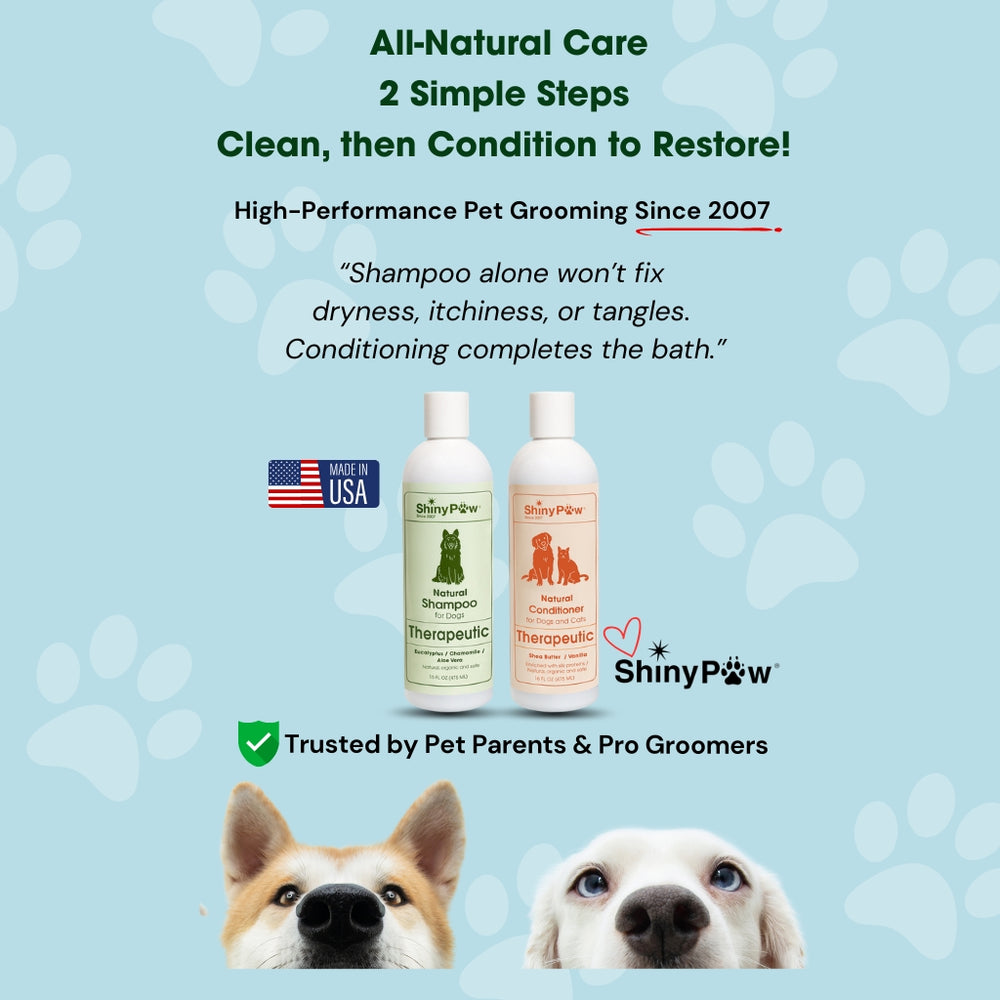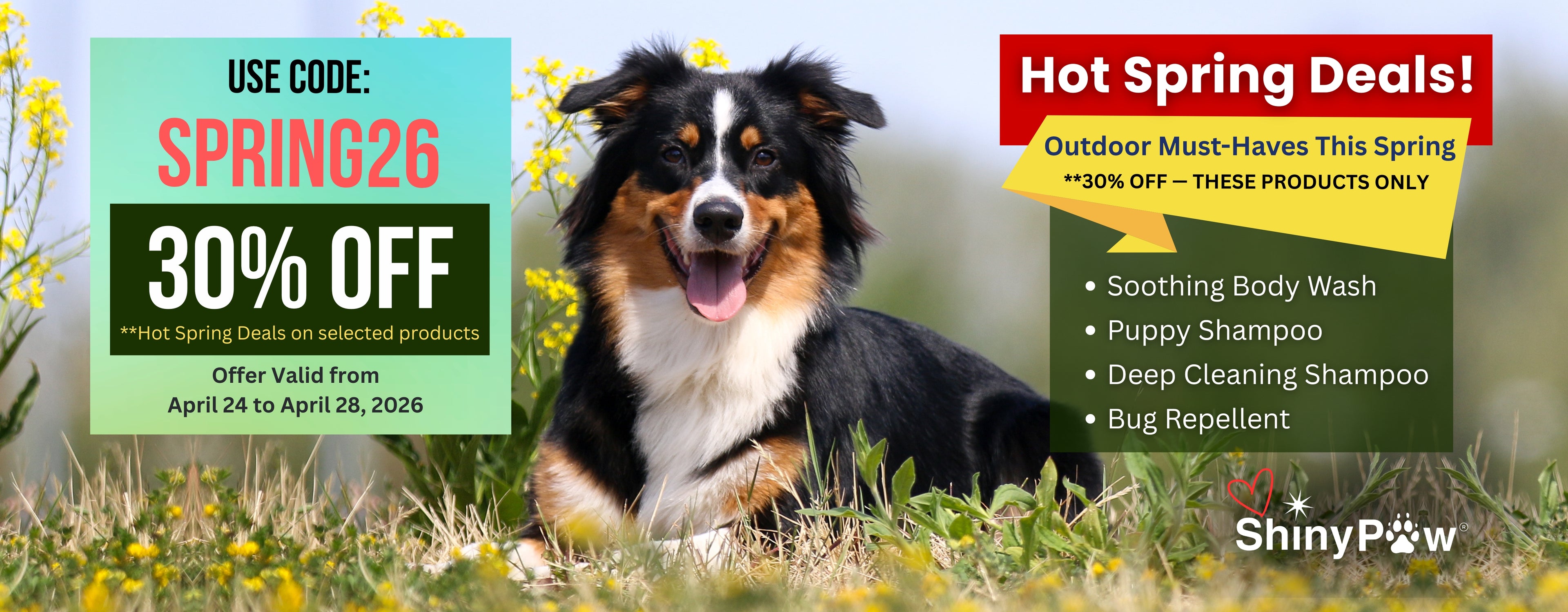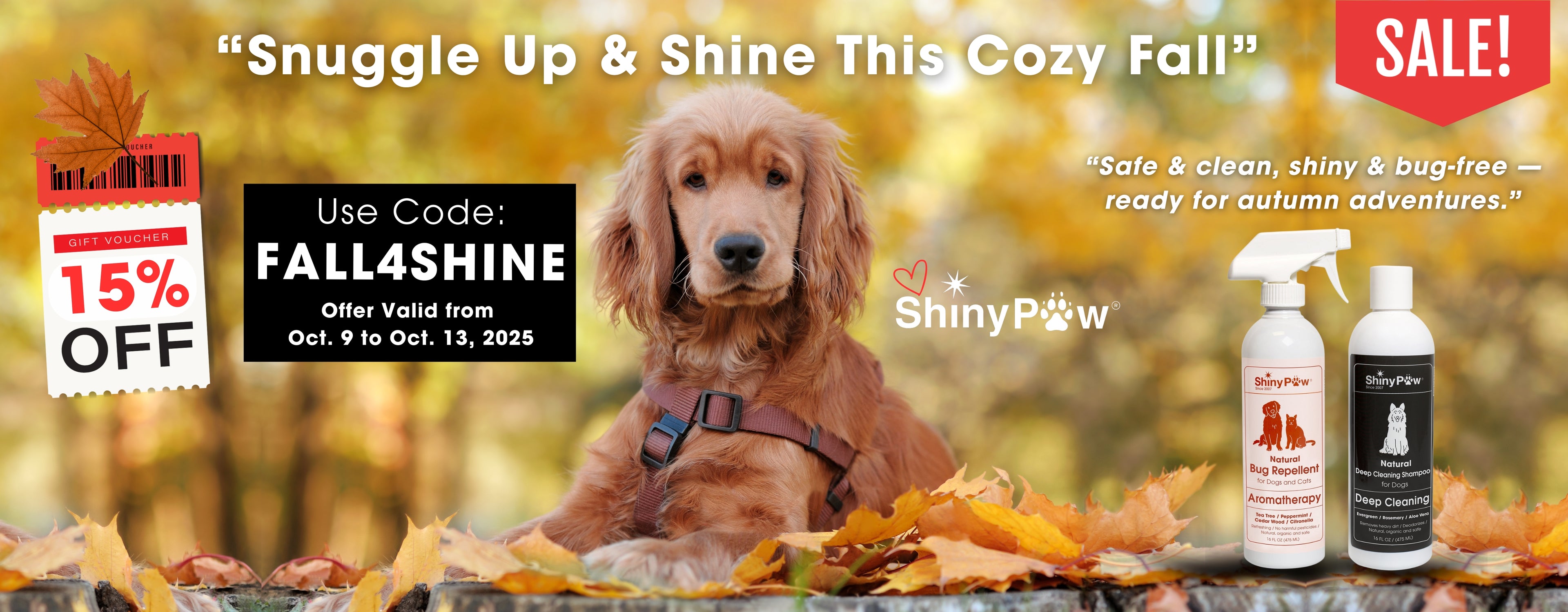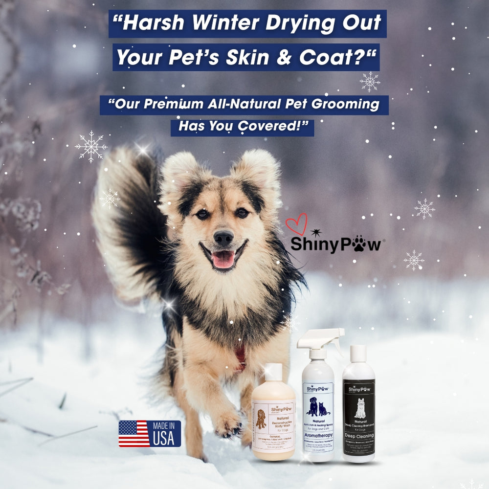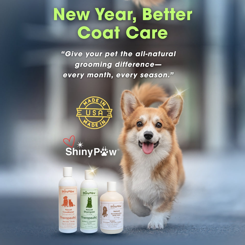 The Shiny Paw® All-Natural Problem Solver™ pet coat and skin care product line includes dog and puppy shampoos and body washes, cat and kitten shampoos, cat and dog conditioners and detanglers, cat and dog ear cleaners, pet anti-itch healing sprays, cat and dog coat fresheners and pet bug repellents.