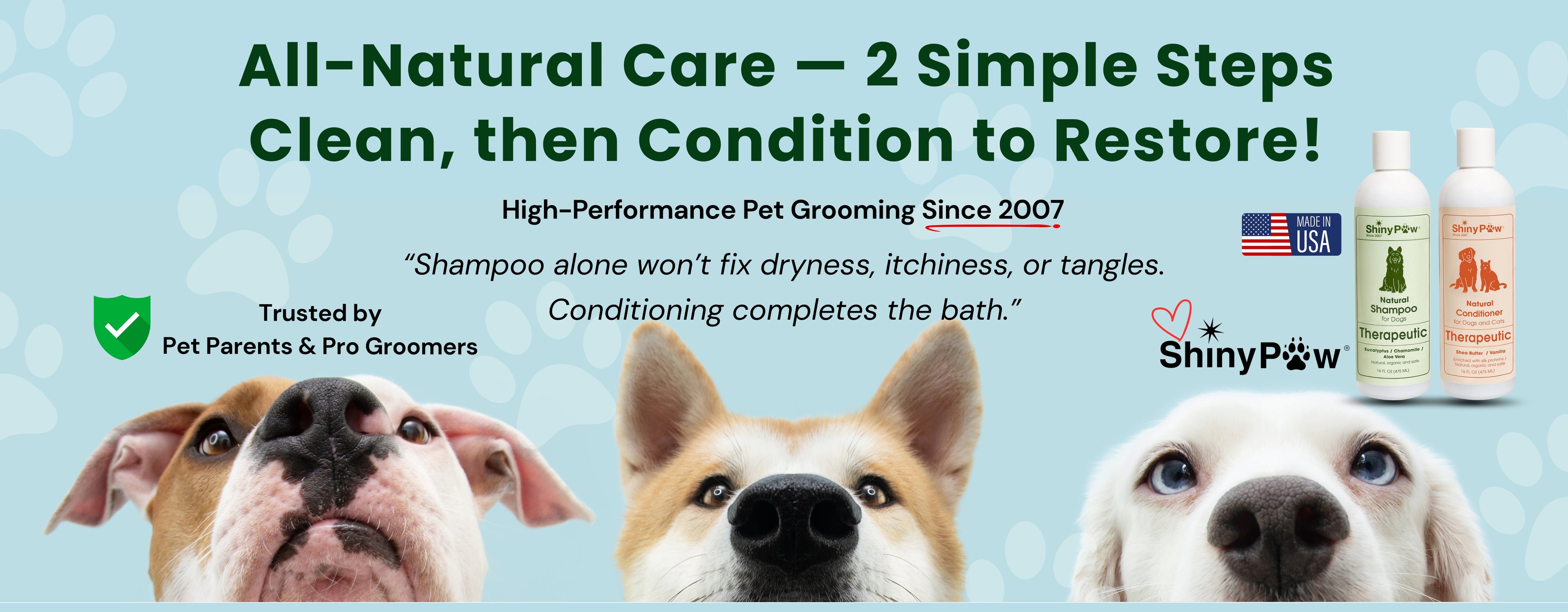 Shiny Paw®, a unique and highly effective blend of pet coat and skin care treatments that combine natural and therapeutic ingredients with fragrant aromatherapy formulations to unleash the gentle cleansing, healing, and restorative power of nature.